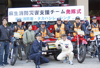 有限会社タカハシレーシングは、今年1月に行われた出初式で事故の再現を披露し、それがきっかけとなり、協約締結にいたった。支援チームのメンバーは、救急救命の資格取得やロープワークを学ぶための事前訓練を同消防署で重ね、技術を磨いてきた。高橋社長は「自分たちの手で、自分たちの街を守っていきたい」と意気込みを語った。