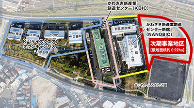 第1期では、慶応大学との研究開発拠点「K2(ケイスクエア)タウンキャンパス」、第2期では、創業支援や成長支援など地域経済の活性化を図るベンチャービジネス創出拠点「かわさき新産業創造センター」、2012年6月の第3期第1段階事業では、超微細(ナノ・マイクロ)技術の研究拠点「NANOBIC(ナノビック)」が開設している。