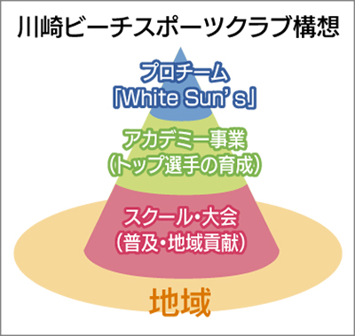 大人から子どもまで参加できるビーチバレー教室や大会、ビーチを活用したイベントの定期的な開催で地域にビーチバレー文化の定着を図る。「スクールやアカデミーで育った選手が活躍すれば地域の人も応援したくなるはず。その応援は必ず選手の力になる」と瀬戸山さん。