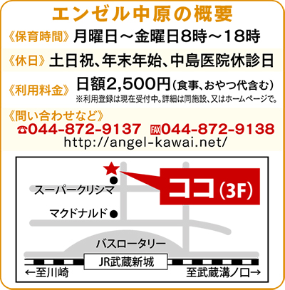 川崎市は、病気等で集団保育に預けることが困難な子どもを受け入れる病児保育施設「エンゼル中原」(中原区新城3の5の1)を4月28日(月)、中原区に開設する。事前登録をすれば、保護者が仕事で看病できない場合などでも子どもを預けることができる。