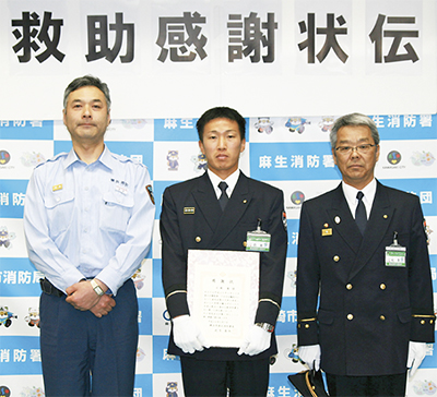 川で溺れた児童を救助したとして、麻生消防署予防課の百瀬優さんに横浜市港北消防署長から感謝状が5月7日、贈られた。