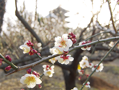 香林寺(細山3の9の1)に隣接する梅園でこのほど、梅が開花した。