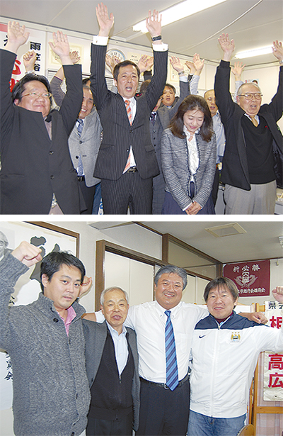 10人の候補者によって争われた市議選。地下鉄延伸の早期実現を訴え続けた雨笠氏は、トップ当選を祝う万歳の歓声の中「選挙戦を通じて廃墟のような空き家の多さや団地の老朽化に驚いた。政策を地下鉄の延伸によるまちづくりに絞った中で頂いた1万票以上は区民の意思だと感じている」と振り返った。