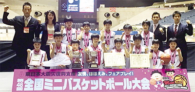 同チームがこのほど、国立代々木競技場第一体育館・第二体育館で行われた「東日本大震災復興支援 第46回全国ミニバスケットボール大会」に初出場し、女子Cブロックで優勝を飾った。川崎市内のチームでは初の快挙。同大会では男女各48の参加チームが4ブロックに分かれ、予選リーグを行い、上位4チームによる決勝トーナメントで各ブロックの優勝を争った。