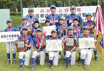 第24回あかもと杯争奪麻生区学童軟式野球リーグ戦大会の決勝戦が6日、虹ヶ丘球場で行われ、金程少年野球部が栗木ジャイアンツを破り、初優勝を飾った。