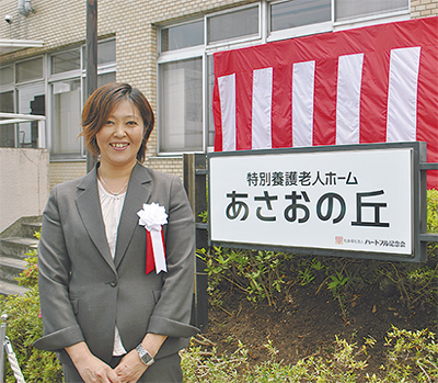 この日は同法人が長年運営してきた特別養護老人ホームを「あさおの丘」と一新させたことに伴う除幕式として式典を開催。ハートフル記念会の理事や評議員、法人が運営する他施設の管理者ら約20人が出席した。