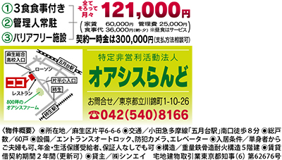 居室内覧や体験入居(共に事前問合せ)も随時受付中なので、シニア向け住宅に興味がある人は気軽に相談を。