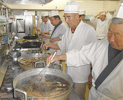 「川崎稲生蕎麦商組合」(多摩区・麻生区/平山政則組合長)が11月30日、区内細山の障害者支援施設「川崎授産学園」で蕎麦とうどんを利用者やボランティア、地域の自治会関係者らに振る舞った。