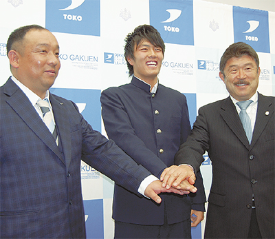 ジュビロは既に14日、磐田市でチーム新体制発表会見を開き、小川選手も出席していた。今回の地元会見は「多くの桐光学園関係者なども期待しており、母校からもエールを送りたい」(村上冬樹校長)との意向で開催されたもの。この日は小塚良雄理事長や村上校長、鈴木勝大サッカー部監督ら桐光学園関係者に加え、ジュビロから加藤久強化本部長らも出席。