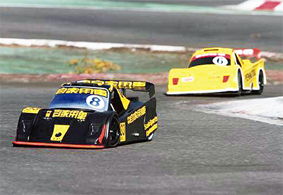 麻生区の三矢研究所が開発した「スケールスポーツ」は、実車の5分の1(全長約80cm×全幅約35cm)サイズでレギュラーガソリンで走行する。1リットルあたり80Km走り、最高速度は55Km以上にのぼる。