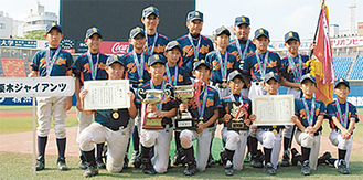 「2016 専修大学カップ 神奈川県学童軟式野球選手権大会」の決勝戦がこのほど、横浜スタジアムで行われ、麻生区代表の栗木ジャイアンツが横浜球友会(都筑区)を2―0で破り、県初優勝を果たした。同大会には、県内各地区の代表54チームが出場。トーナメント戦で争い、栗木がその頂点に立った。