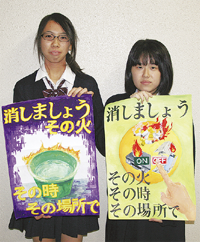 今月9日から15日に行われる秋の火災予防運動の一環。防火標語「消しましょう その火 その時 その場所で」をテーマに描かれ、22の応募作品の中から選ばれた2作は、火災予防運動期間に町会・自治会や公共施設などに掲出される。