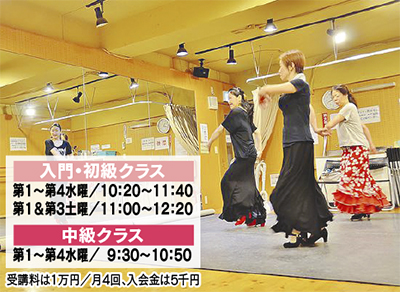 同教室では通常レッスンの体験を1千円(80分)で受付け中。入門・初級・中級クラスがあり、個人でも仲間同士での参加も可能。しなやかな美しさと健康増進をテーマに、フラメンコを体験してみては?