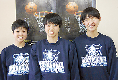 3月末に神奈川県と東京都で開催された「第30回都道府県対抗ジュニアバスケットボール大会2017」に、川崎市から柿生中学校女子バスケットボール部の生徒3人が県選抜チームで出場した。
