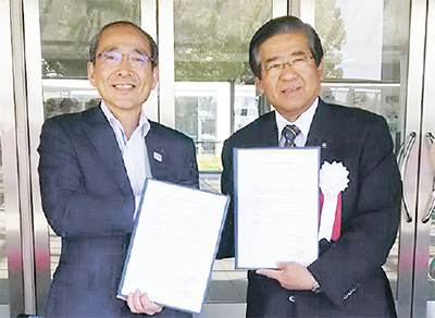 「川崎モデル」と呼ばれる中小企業支援策で交流を深める川崎市と静岡県富士宮市は先月27日、産業連携に関する基本協定を締結した。富士宮市体育館入口で行われた調印式には川崎市から三浦淳副市長、富士宮市から須藤秀忠市長が出席した。
