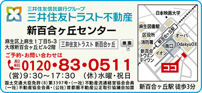 三井住友信託銀行グループ「三井住友トラスト不動産新百合ヶ丘センター」は、麻生区内唯一の信託銀行系の不動産会社。その特性をいかした連携体制のもと、土地活用や資産計画についての相談を受け付けている。そのほかにも、戸建て・マンションの一般住宅のみならず、大規模な不動産も扱っている。不動産の売却、購入に関する相談もでき、「地元の不動産のことならお任せください」と同センター。