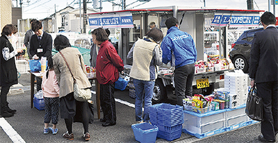 こうした背景から移動販売が実現。初日となった16日、ローソンは日用品、冷蔵・冷凍に対応した軽食のほか、惣菜など、JAは地元産の野菜などを会場に持ち込み、区商店街連合会の百合丘中央商店会からは補聴器や雑貨などを扱う店が集まった。会場には地域住民ら多くの人が訪れ、地元東百合丘から来た女性の一人は「いつも遠くまで買い物に行っていた。新鮮な野菜もあるので、便利になるのでは」と話す。グループホームひかりの担当者は「施設入居者の方々が買い物をすることができ、外から入ってくる色々な方とも交流ができる」と語る。