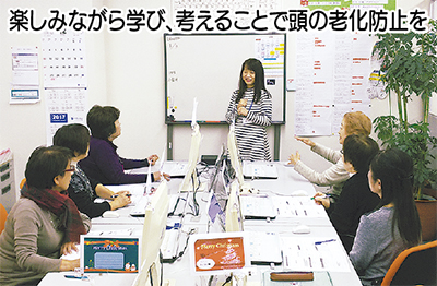 スマホやタブレットの検索では得られない「講義を聞く〜頭で考える〜操作する〜成果物の出力」を繰り返すことで脳が活性化する同スクールの授業。「”学ぶ”にチャレンジして頭を働かせることもアンチエイジングの一つ。ぜひ楽しみながら通って頂けたら」とスタッフ。