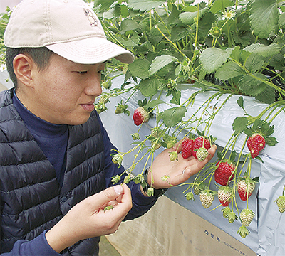 14年冬からイチゴ狩りを開始した同園では現在「紅ほっぺ」や「章姫」「桃薫」など6種ほどのイチゴを栽培し、発育に応じてイチゴ狩りや直売を行っている。昨年も5千人以上の来場があり、今年も週末にかけて予約の取りずらい状況になっているという。