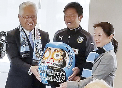 北沢仁美区長や鬼木監督と必勝ダルマの目入れを行ったアシストクラブの渡邊辰夫副会長は「リーグ優勝をするとユニフォームに星印が入るので、それを増やして欲しい。アシストクラブとしてもチームを支援していきたい」と話した。