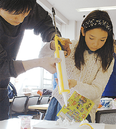 「回を重ねる毎に『仕事ごっこ感』が薄まり本格的になってきている」(関係者)というミニたまゆり。今年は40以上の企業や団体、公共機関が協力し、両日で地域の小中学生2000人以上が仕事の体験などを行い、町の通貨「ユリー」を得て買い物などを楽しんでいた。