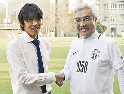 土グラウンドから人工芝サッカー場への改修は同学園40周年を記念した事業の一環。小塚理事長が「世界に羽ばたく選手がこれからも輩出できるよう日本一、世界一の施設を作りたかった」と思いを込めた同グラウンド。この日は高校サッカー部と同部OBチームとの試合などが組まれ、タビナス・ジェファーソン選手(J1川崎)ら、サッカー部出身選手が現役生徒と新しくなったピッチの感触を確かめながら交流した。