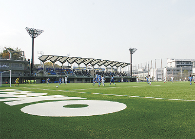 麻生区栗木の桐光学園(小塚良雄理事長)がサッカーの新グラウンドを完成させ、4月2日に記念式典などを行った。J1磐田の中村俊輔選手らOB選手らも駆けつけ、新たな施設の門出に華を添えた。