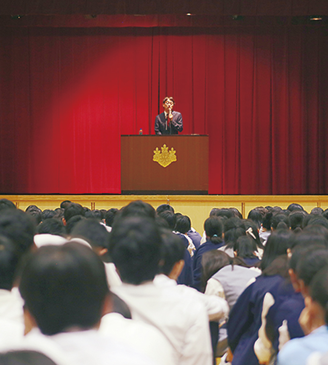 当日は中学1年生から高校3年生まで約2000人が参加。羽生氏は「決断力を磨く」をテーマに、自身の経験を基に不調のときの対処法やミスをしたときの対応等を語った。「様々な経験をして自分なりの美意識を持つことが、判断、決断につながると思う」などと話し、生徒たちは真剣な表情で聞いていた。また、生徒からは「毎日将棋という同じことの繰り返しで嫌にならないか」という質問も。羽生氏は「嫌になるときもあるが気持ちは天気のように調整できないもの。ある程度割り切り、気持ちが落ちていてもやるべきことをやって気持ちが上がるのを待つ」と答えていた。