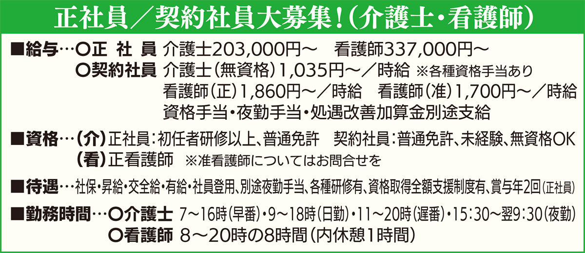 「そろそろ地元で働きたい」「新しい施設でリスタートを」など、転職も復職も受け入れている。正社員、契約社員など働き方も希望に応じているほか、資格取得について費用の全額支給制度など、セントケアならではの手厚いサポート体制も大きな魅力のひとつ。