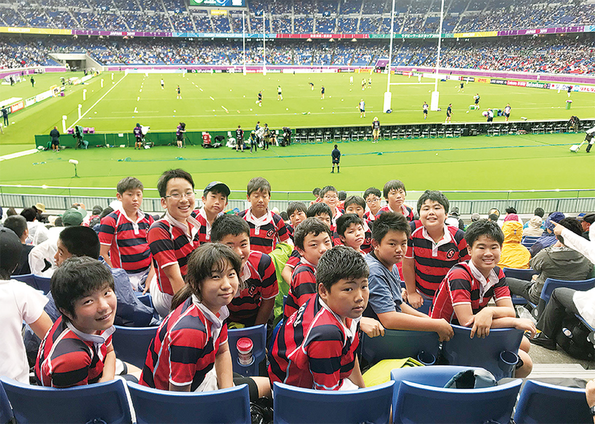 麻生ラグビースクールの6年生児童約20人が22日、横浜国際総合競技場で行われたラグビーワールドカップの試合を観戦した。