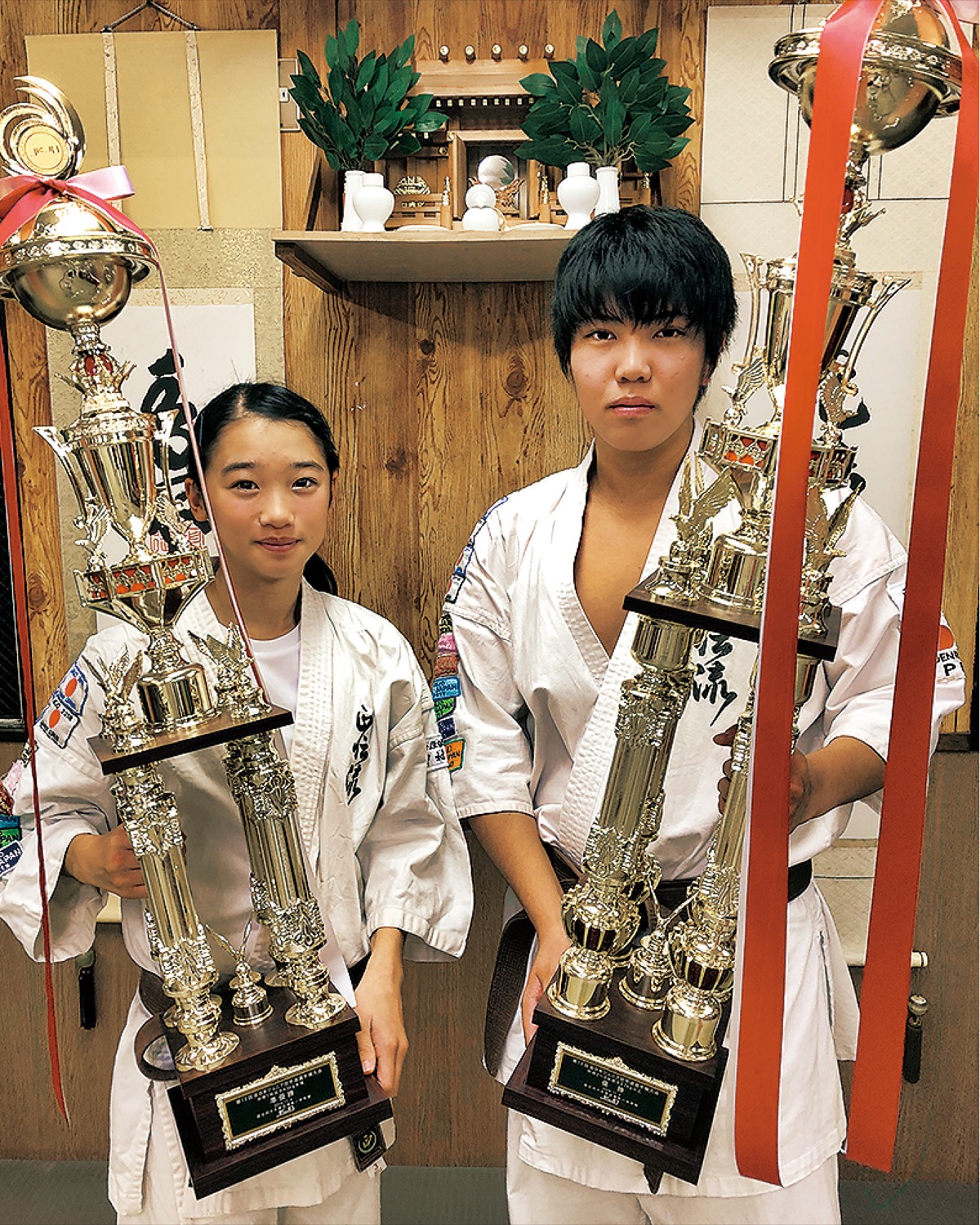 2選手が好成績を収めたのは、11月に国立代々木競技場 第一体育館(東京都渋谷区)で開催された「第13回JKJO全日本ジュニア空手道選手権大会」。須藤君は「中学2〜3年男子57kg以上の部」で見事優勝、松尾さんは「中学1年女子43kg未満の部」で準優勝を飾った。