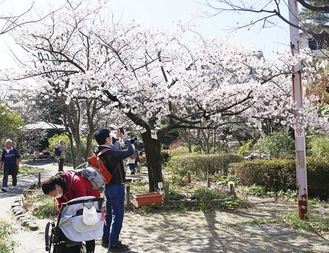 近くには河津桜も咲き始めており、区職員は「両方の桜を見てもらえれば」と話している。