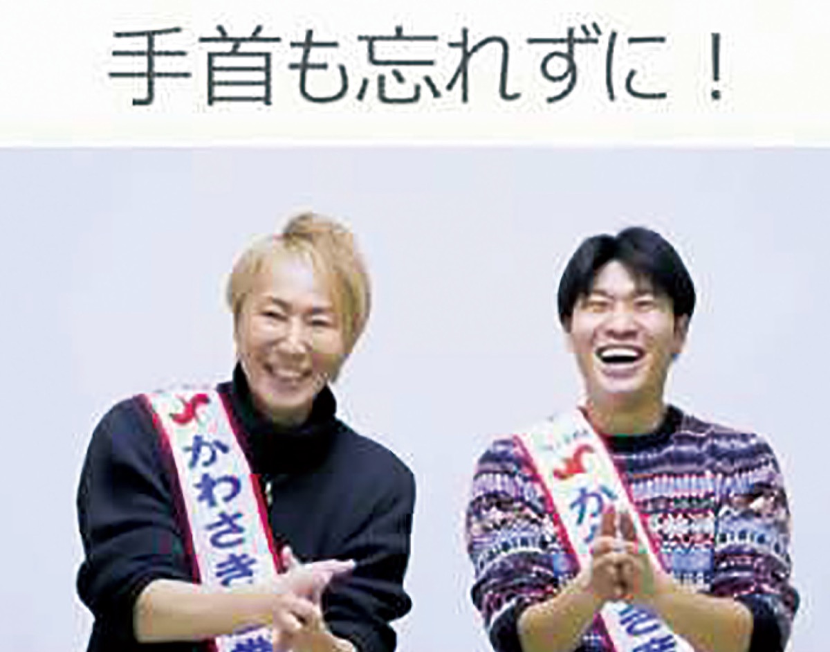 麻生区を拠点に歌や踊りのレビューショーを上演する舞台俳優・神崎順さんと、多摩区の川崎新田ボクシングジム所属で元日本フライ級王者・黒田雅之選手が、新型コロナウイルス対策のため手洗い動画を制作。インターネットで公開し、啓発を呼びかけている。