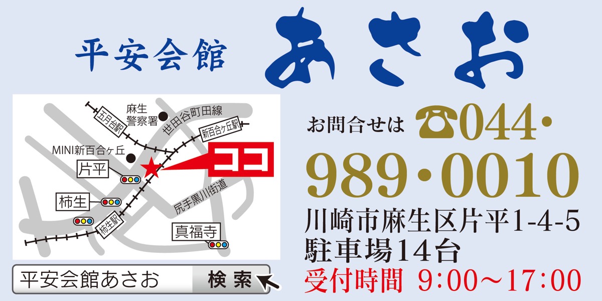 麻生区内で少人数・家族葬のシェアNo.1の「平安会館あさお」。川崎市内で創業50余年のセレモニアグループの葬祭式場だ。5年目を迎えた同館では、1日1組限定の「貸切」、充実した設備のプライベート空間でのお見送りを約束。家族、親族、友人など近親者でゆっくりと故人を見送り、偲ぶことができる。