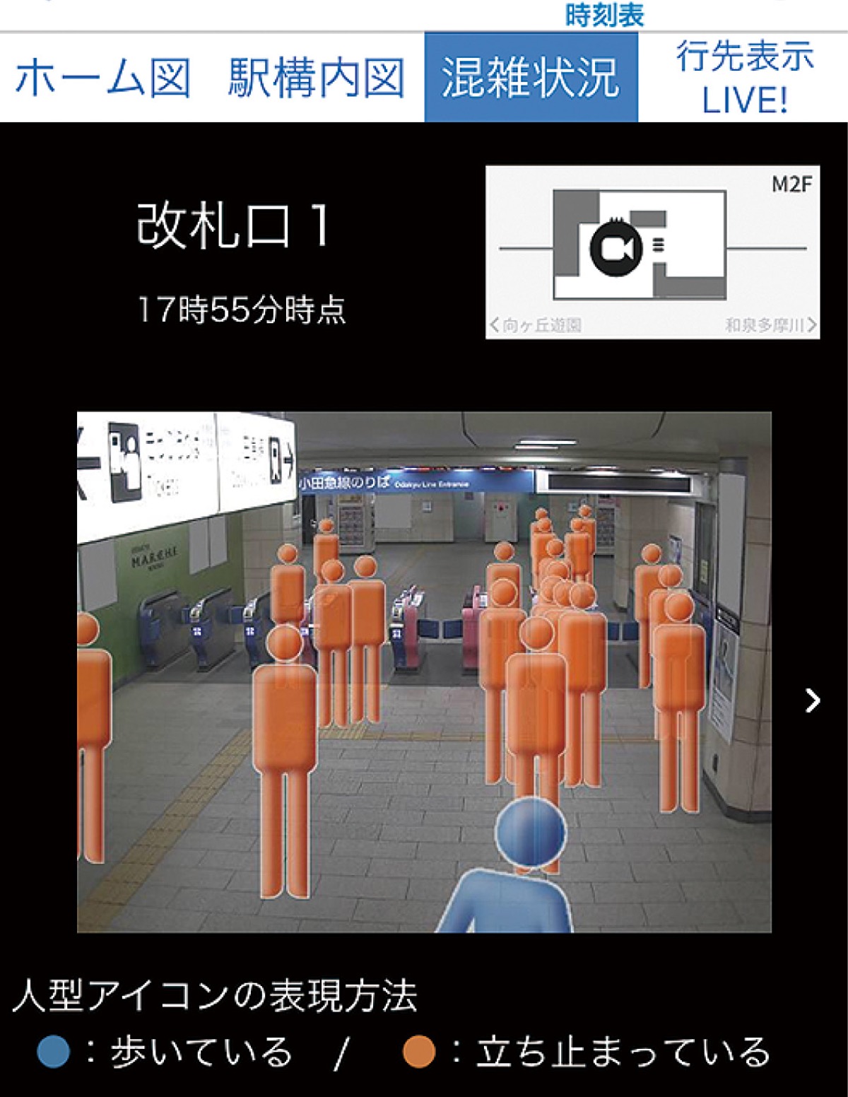 スマートフォンの公式アプリ「小田急アプリ」では、一部を除き各駅の改札口付近のリアルタイム映像を配信している。