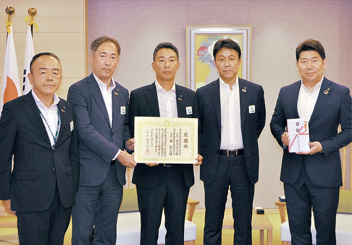 同社執行役員の副島健二さんは「川崎に愛着のある従業員が多い。少しでもまちが元気になれば」と話し、福田紀彦川崎市長は「 withコロナの時代に合わせて活用したい」と感謝状を贈った。同社は、川崎フロンターレが開催する子ども向けサッカー教室への協賛なども行っている。