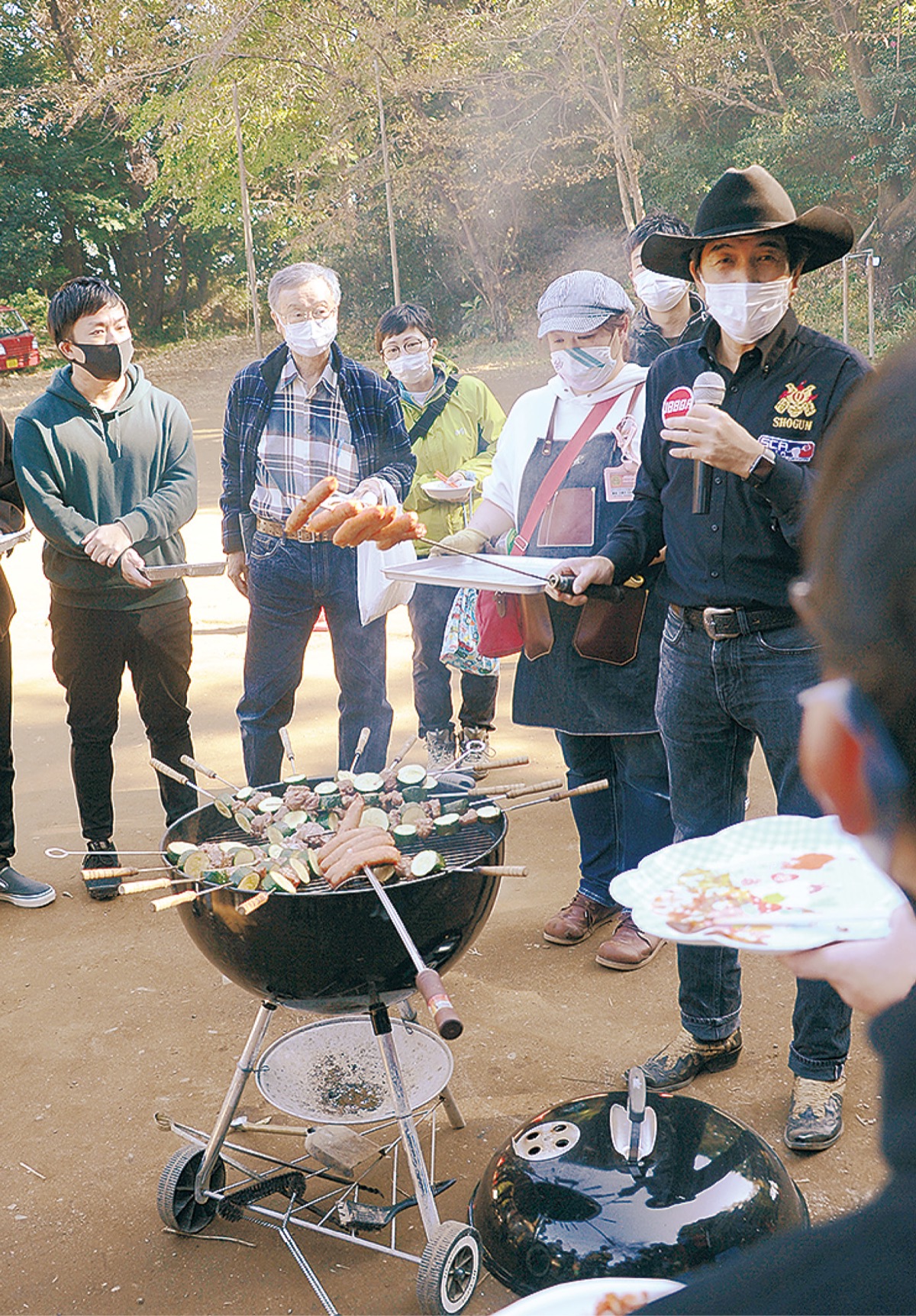 後半の実技講習は野外で行われ、炭の種類や火のつけ方、肉の焼き方など上級インストラクターが実践しながら紹介した。講座の中で、下城会長は参加者に役割を与え、「実際のBBQでも、何もすることがない人がいないように、その人に合った仕事を与え、みんなが楽しめるようにするのも主催者の役割」と呼び掛けた。