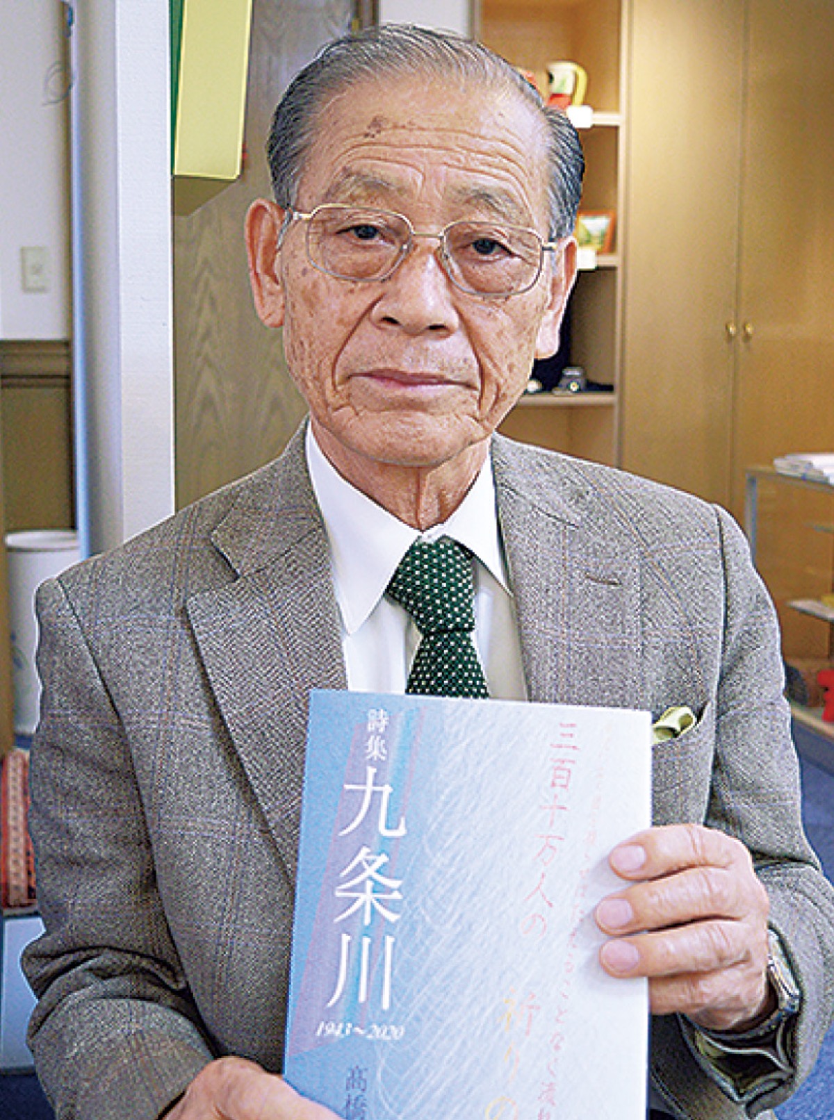 戦時中や終戦後の記憶と思いを綴った『詩集 九条川』(土曜美術社出版販売)を、高石在住の高橋嬉文さんが11月末に出版した=写真。