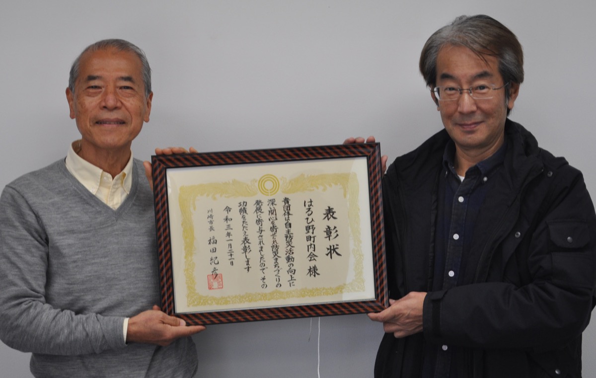 そうした活動の功績が認められ、今回、川崎市から自主防災活動功労者として表彰された。杉本会長は「町内会の組織整備と並行して進めてきた『自主防災組織』の活動が評価されたのは嬉しい。2月13日未明に地震があったばかりで、川崎市でもいつ発災するかは分からない。コロナ感染はあるが、できる範囲で防災対策を進めていきたい」と喜びながらも気を引き締める。