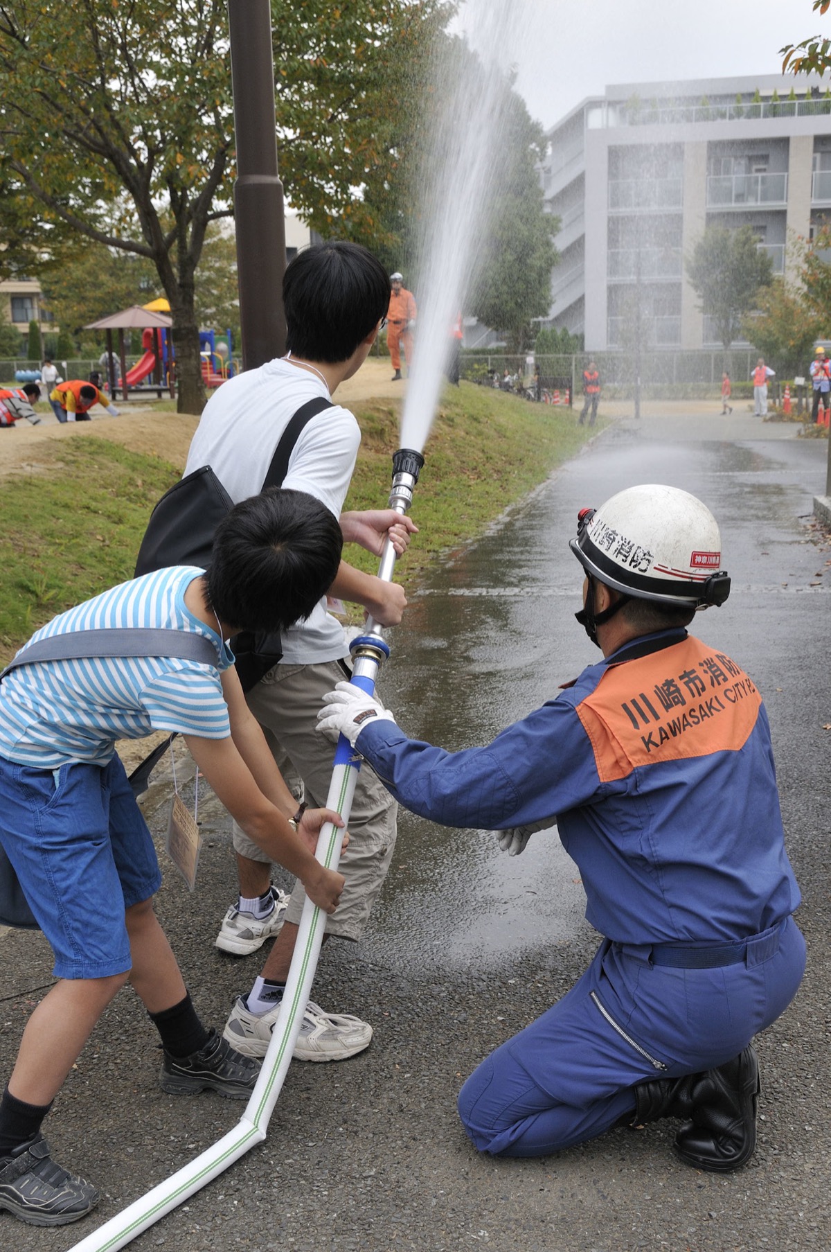 また応急処置講習会や、安否確認旗の掲出訓練、放水訓練活動なども定期的に実施。毎年11月には「防災ふれあい祭」を開催。この催しは、消火栓を使った放水体験をはじめ、水消火器の体験、ゲームやクイズを通して楽しみながら、防災知識や災害発生時に必要な知識を身につけてもらうなど、災害を未然に防止し被害の軽減を目的とした取り組みだ。