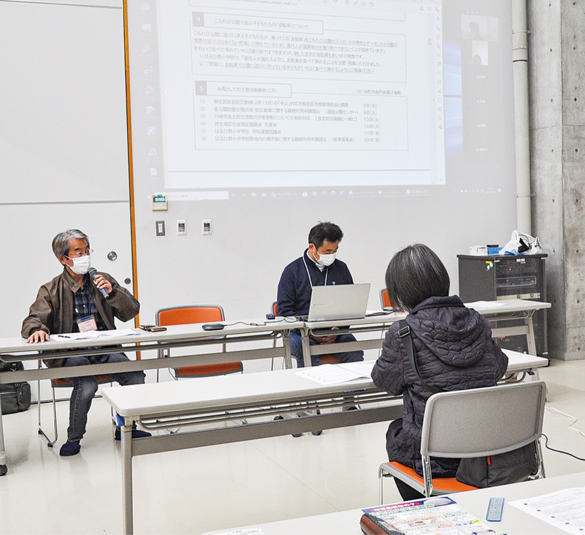 昨年2月に同センターで役員会を実施して以降、町内会の集まりが中止に。回覧板での情報発信のみで、年に一度の総会も書面開催するなど、活動が制限されていた。比較的年齢層も若く会社勤めの住民も多いことから、オンライン会議ツール「Zoom」を使った役員会の開催を模索。9月から同センターを会場に、町内のブロック代表者に議題の紙を配布し、各家庭をオンラインでつないで役員会を開催。毎回、30人以上が参加しているという。