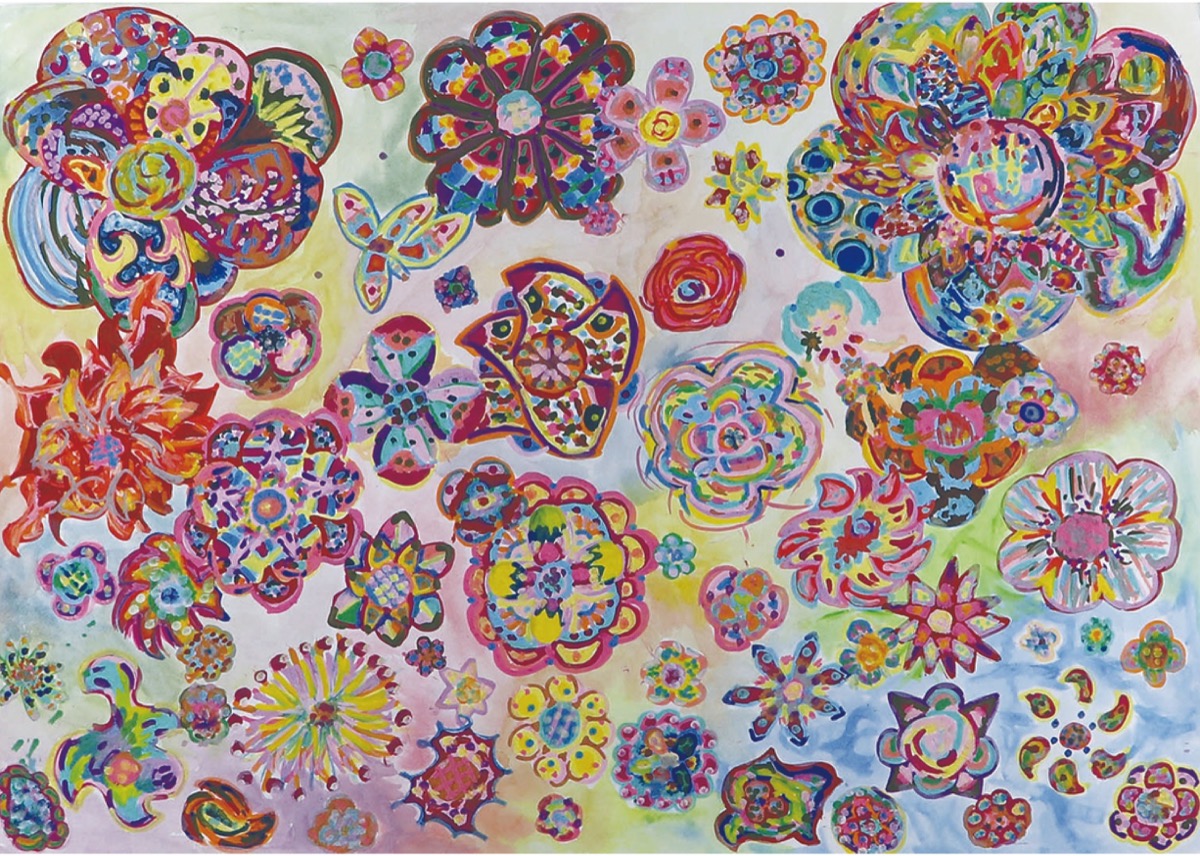 審査員は「1つとして同じ形や色彩のない、個性豊かな花をたくさん描き、夢のある未来を表現しています」と講評。受賞を聞いて岩野さんは「最初はピンとこなかったけど、オンライン授賞式に参加したり賞状や副賞をもらって、やっと実感した。すごくうれしい」と声を弾ませる。