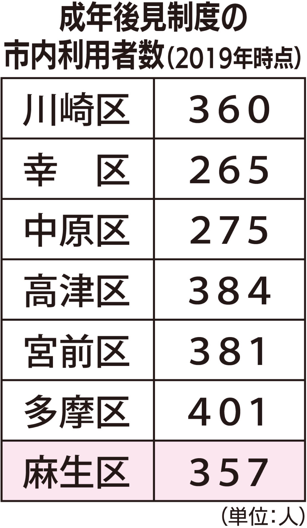 利用対象者とされるのは、65歳以上の認知症高齢者5万7701人(2020年推計値)と、精神障害者保健福祉手帳・療育手帳の所持者2万4929人。自己判断能力が不十分な人が市内で約8万人いるが、成年後見の利用者は少なく普及が進んでいない。利用のためには家庭裁判所へ「申立」が必要で、弁護士や司法書士が後見人となり本人に代わり財産管理を行う。親族が後見人になる場合もあり、手続きの複雑さや専門家への報酬、制度の認知度の低さなどが利用が進まない要因となっている。