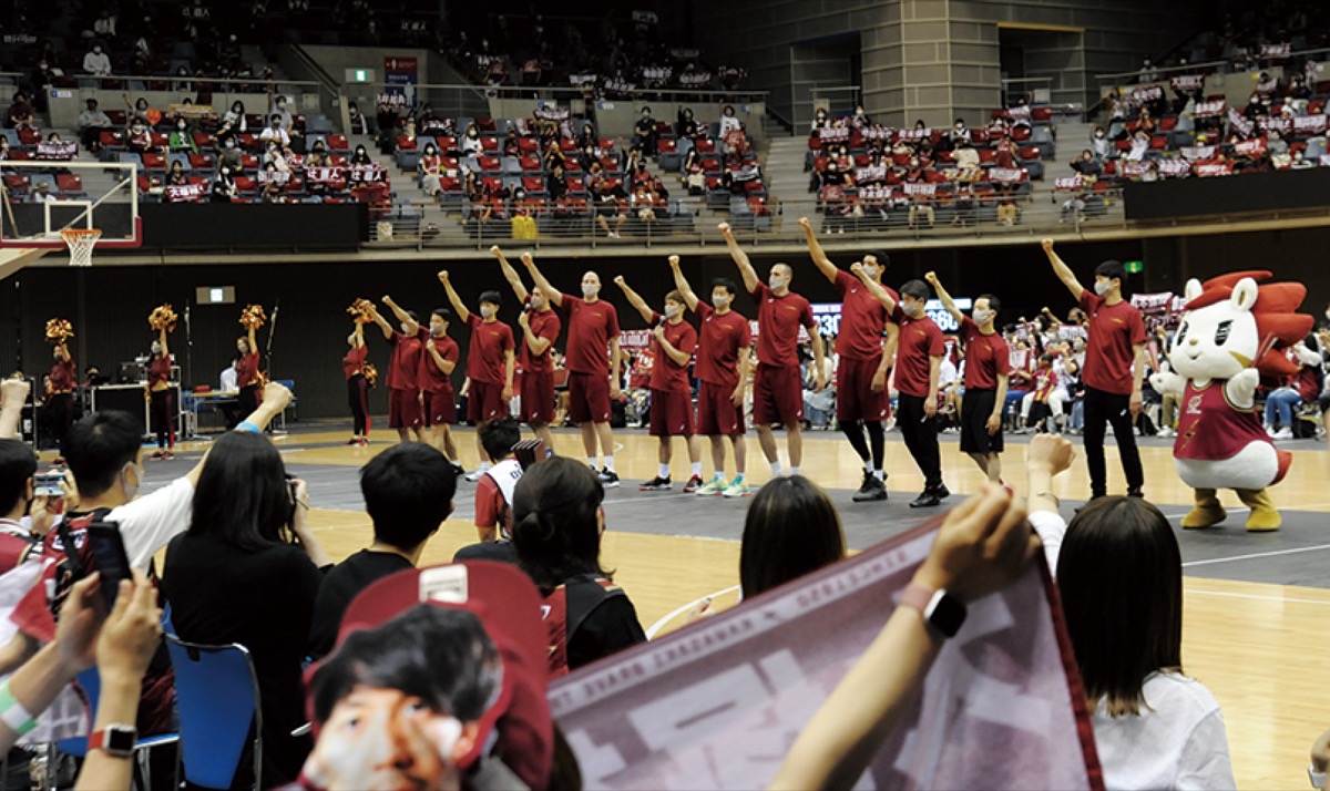昨季の収支は、決算期間を昨年4月から1年間とし売上約9億6千万円。営業利益は3億6千万円超の赤字だった。元沢社長は「3年間で運営の基礎ができた。2年後の5季目には売上約17億円、利益5千万円超えを狙い、黒字化させる」と意気込む。最終候補地を2カ所に絞り調整を進める1万人収容の新アリーナ計画にも触れ、「バスケ興行とアリーナ運営で40、50億円は十分狙える」との展望を示した。