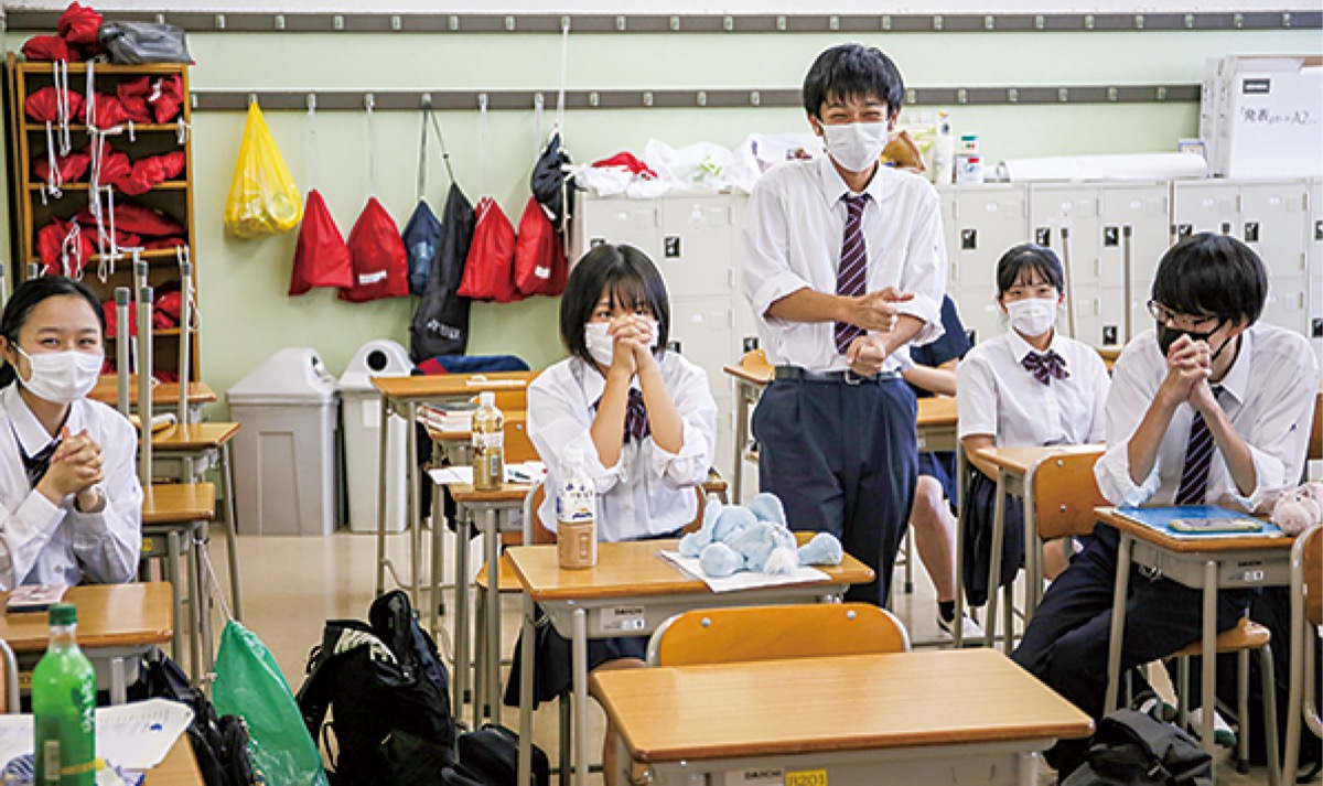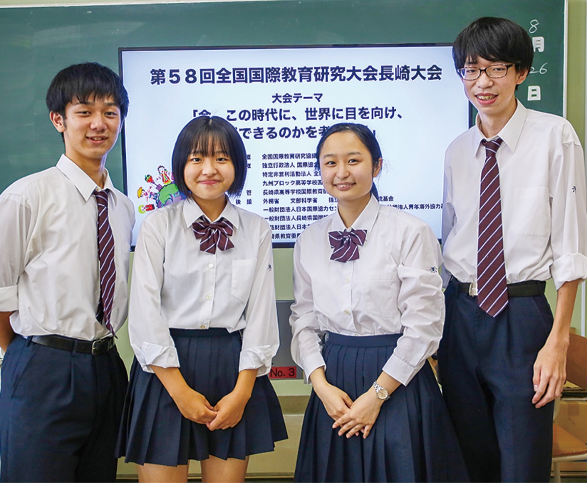 同校国際交流部は、米軍キャンプ訪問や留学生との交流などを通じ、世界へ視野を広げる活動を行っている。発表会には、橋本蒼汰さんをリーダーに、安藤実里さん、柏井知颯さん、木村拓翔さん、谷口美七海さんの3年生5人が出場した。