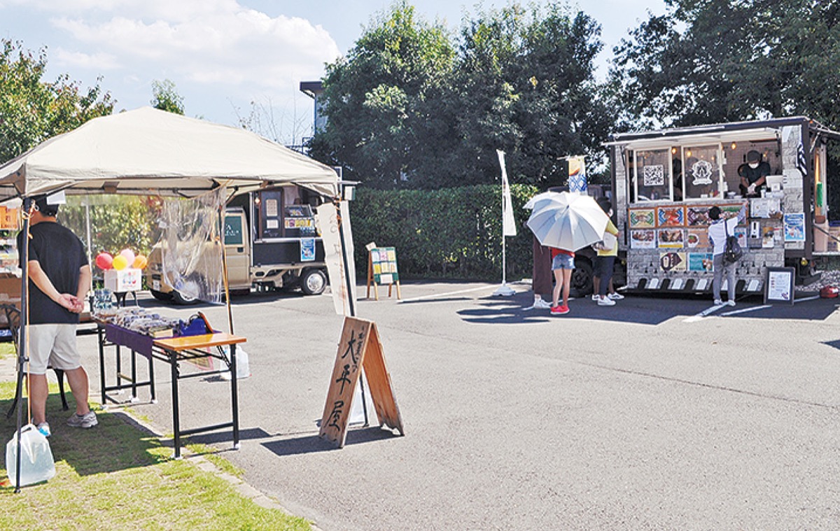 緑に包まれた大型霊園「川崎清風霊園」(片平)で9月23日、地元の人気店が集まる「清風マルシェ」が行われ、お墓参りで集まった来園者は地元の味を楽しんだ。