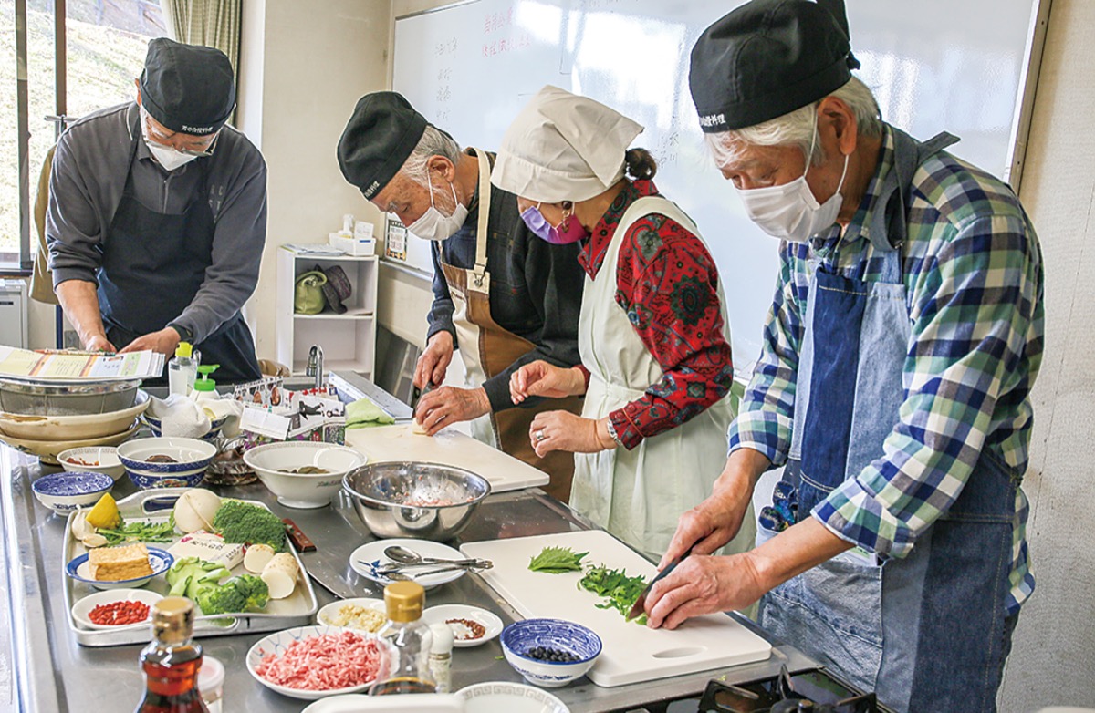 「どんな料理をつくっているのか家族も気になっている」と、できた料理を持ち帰る姿も。会員の一人は「手を動かすことや、わいわい料理をすることが楽しい」と笑顔を見せていた。