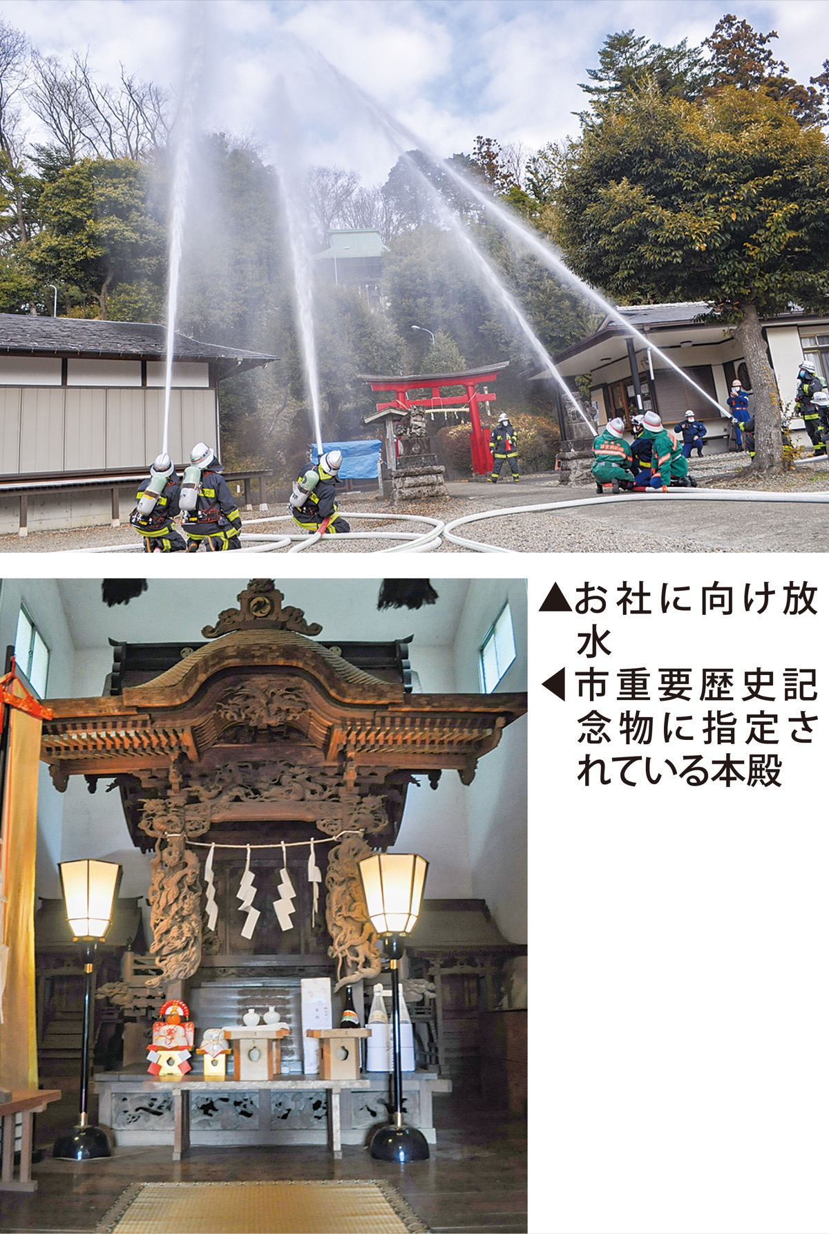 同神社の池田貞明宮司は「文化財を後世に伝えていくことが神社の大切な使命。そのためにも我々だけでは難しく、消防署、消防団の協力があってできるので、心強く、感謝している」と今回の訓練を振り返った。