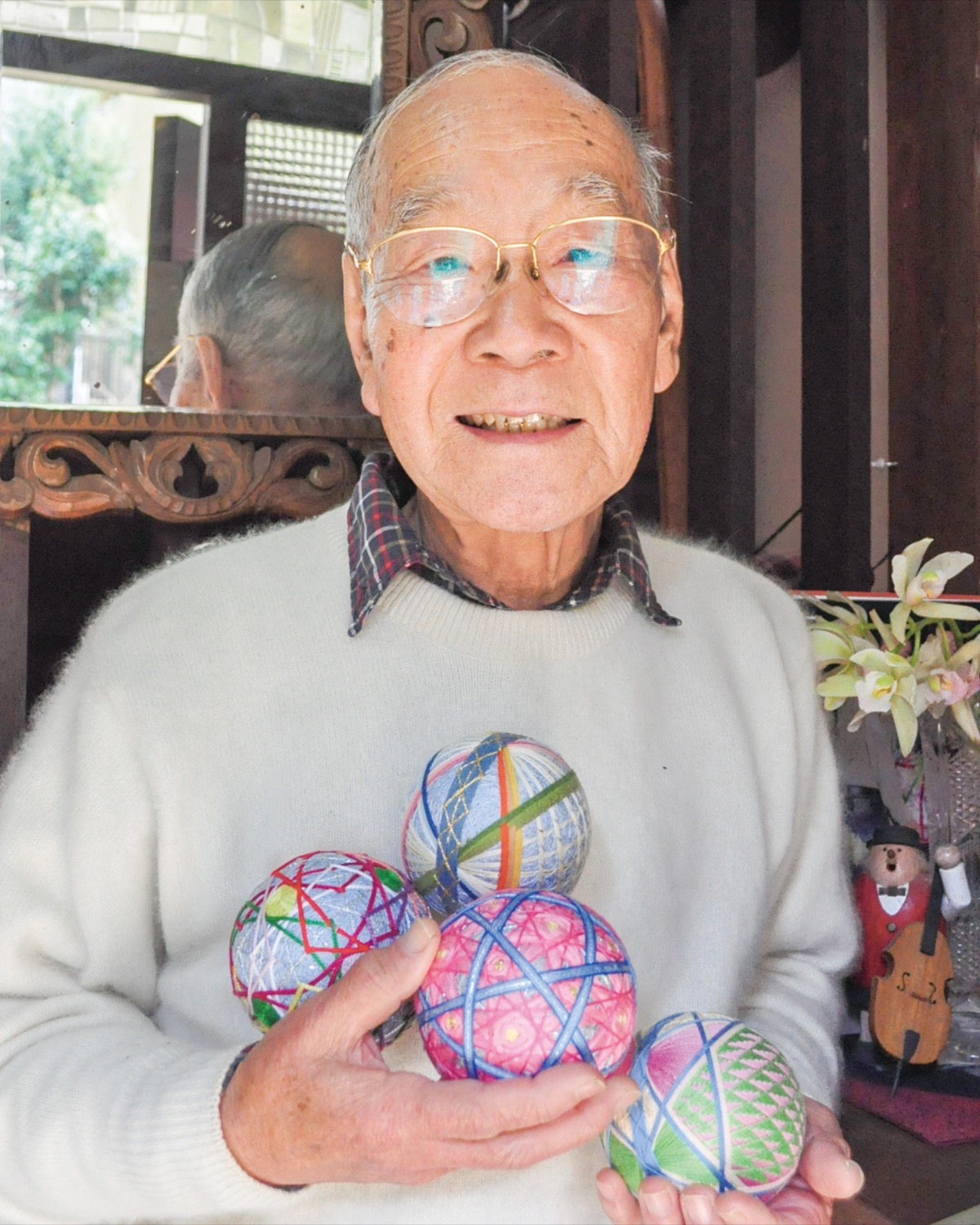 色鮮やかな、複数の糸を幾重にも巻いて作られる「手まり」。千代ヶ丘在住の女性(68)の母親が制作した手まりを、インドの高齢者や子どもたちに見てもらおうと先月、田中崇さん(89)=高石在住=がインド大使館に届けた。「母親の手まりが海を越えることになるなんて、うれしいです」と女性は喜んでいる。