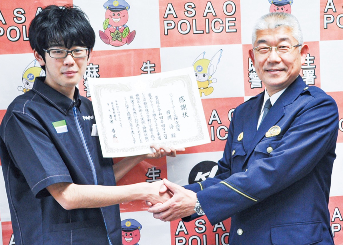 吉田署長は「アルバイトを始めて間もない中で、勇気をもって声がけし、詐欺を未然に防いだことは、被害者にとっても、我々にとってもありがたい」と労いの言葉をかけた。西岡さんは「自分が販売したもので被害にあわず安心した。今後も疑問に思ったら何事もそのままにせず、解決する方向へ考えていきたい」と話した。